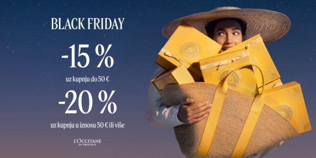 Ostvarite 15 % popusta uz kupnju do 50 eura te 20 % popusta uz kupnju u iznosu 50 eura ili više samo od 27. 11. do 30. 11. 2025. godine u L’Occitane trgovini u Pointu i na webu hr.loccitane.com.